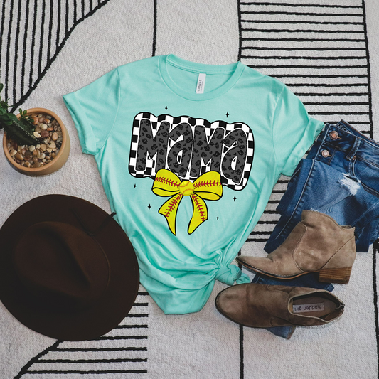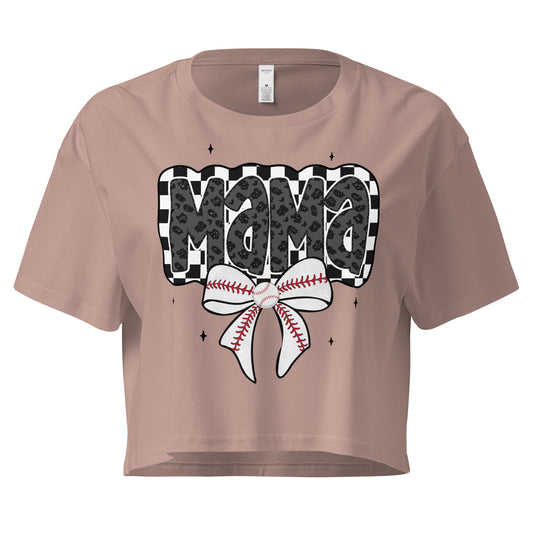 Checkered Bow Cute Baseball Mama Women’s Crop Top