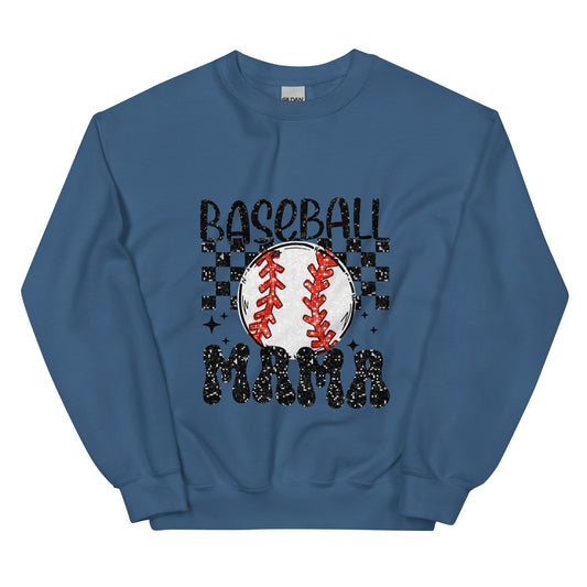Checkered Mama Unisex Fit Pullover Sweatshirt for Baseball Moms